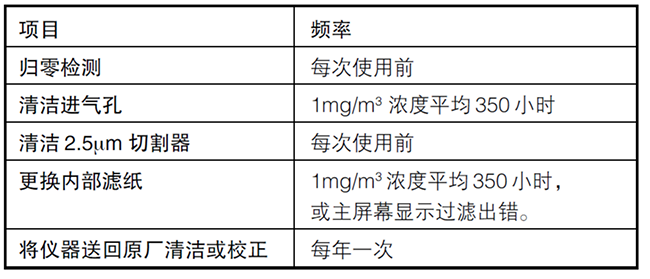 TSI 8530/8532粉塵儀需要定期維護(hù)保養(yǎng)。表 4-1 所列,為廠(chǎng)家建議的維修保養(yǎng)時(shí)間。
